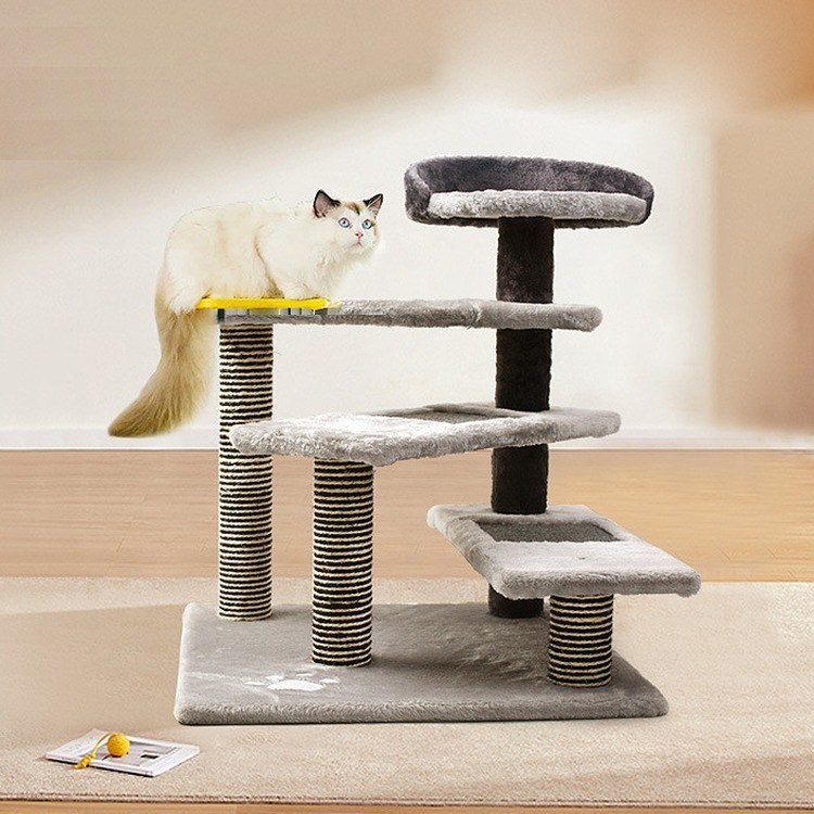 Design d'escalier bon Sisal arbre de chat moderne Tour d'escalier gris Forme d'escalier multifonctionnel arbre de chat pour chats